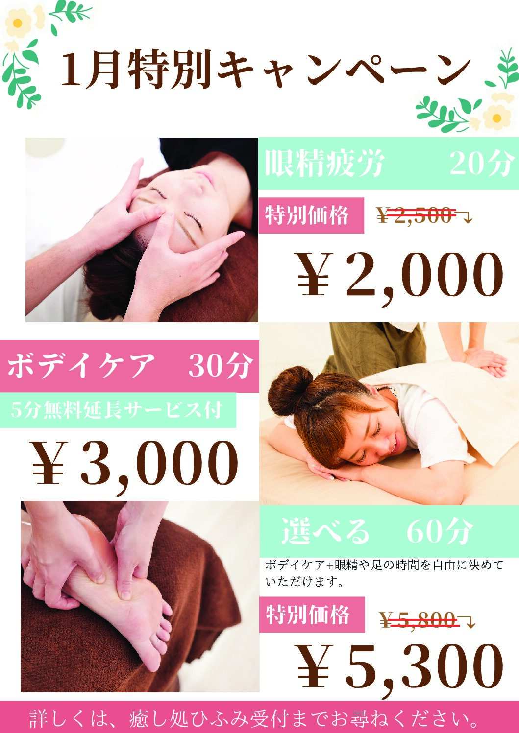 ・ボディケア30分ご利用の方 5分無料延長サービス