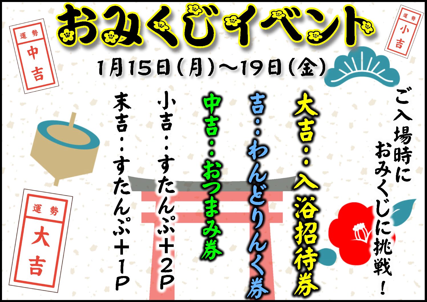 大吉が出た方には入浴招待券をプレゼントです!