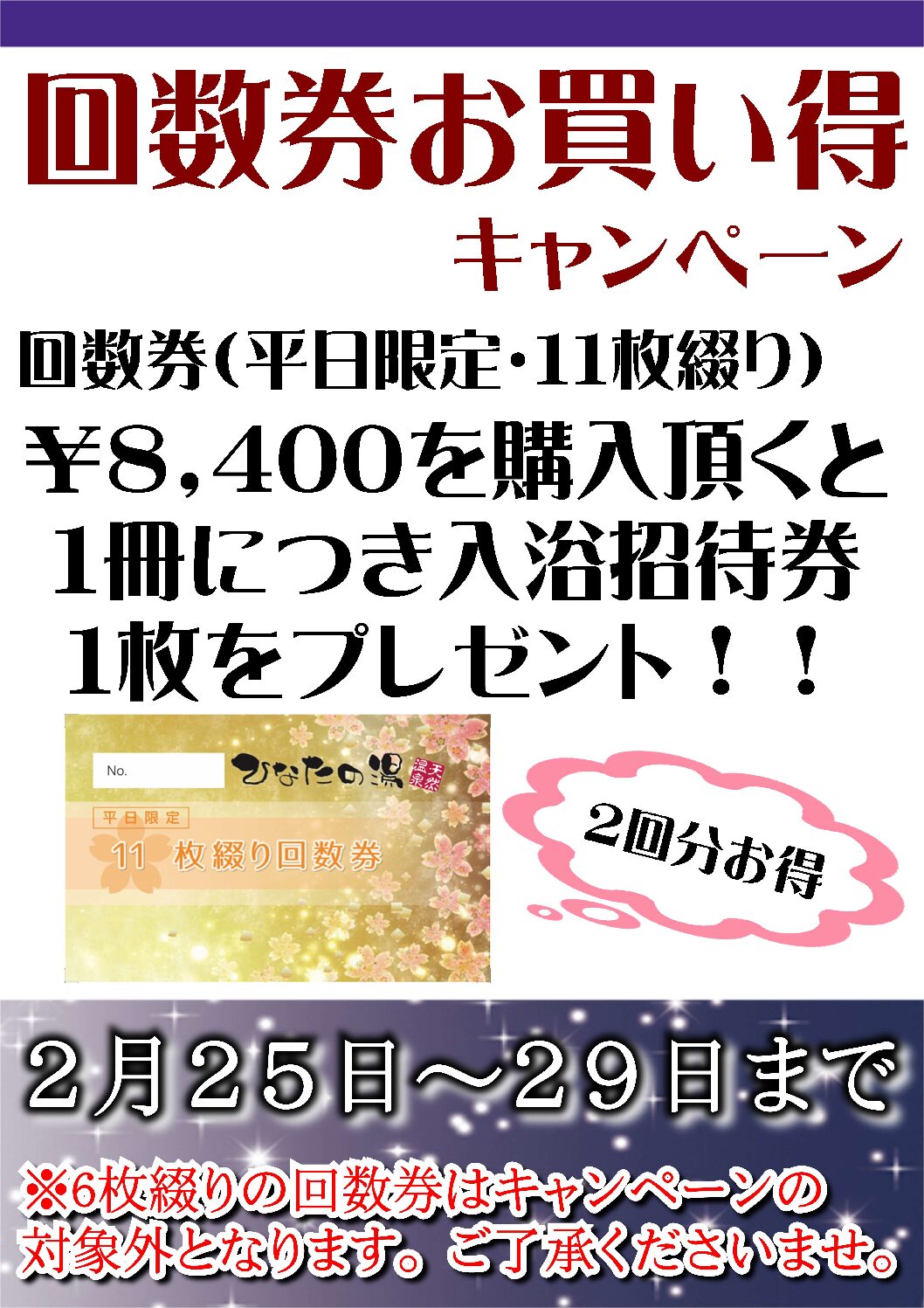 【2月25日~29日】入浴回数券お買い得キャンペーン!