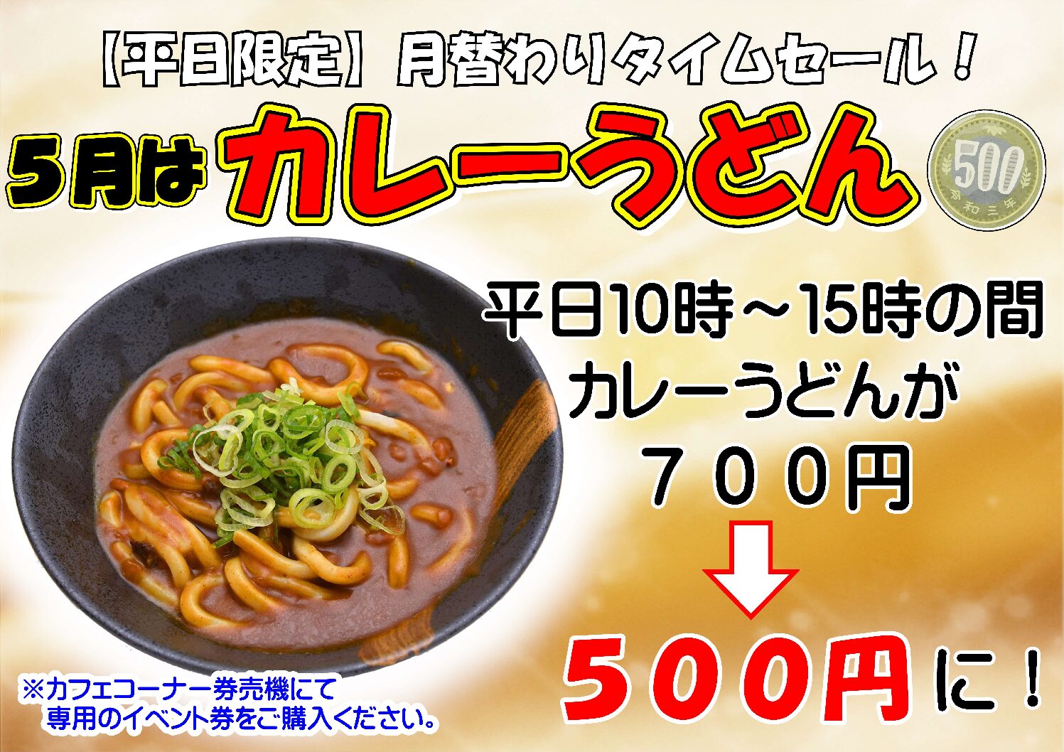 【5月平日 10~15時】月替わりタイムセール”カレーうどん”