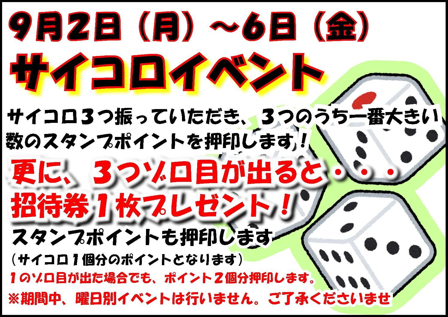 【9月2日~6日】サイコロイベント実施!