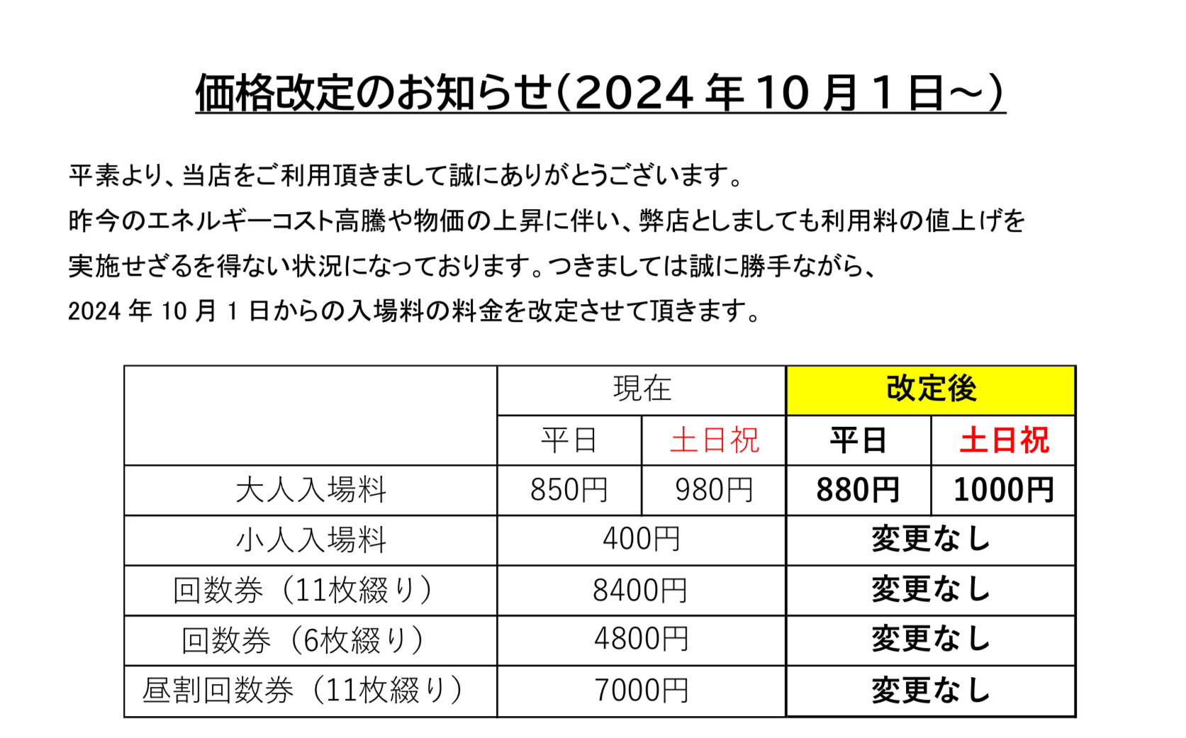 ・入浴回数券(全ての種類) 変更無し