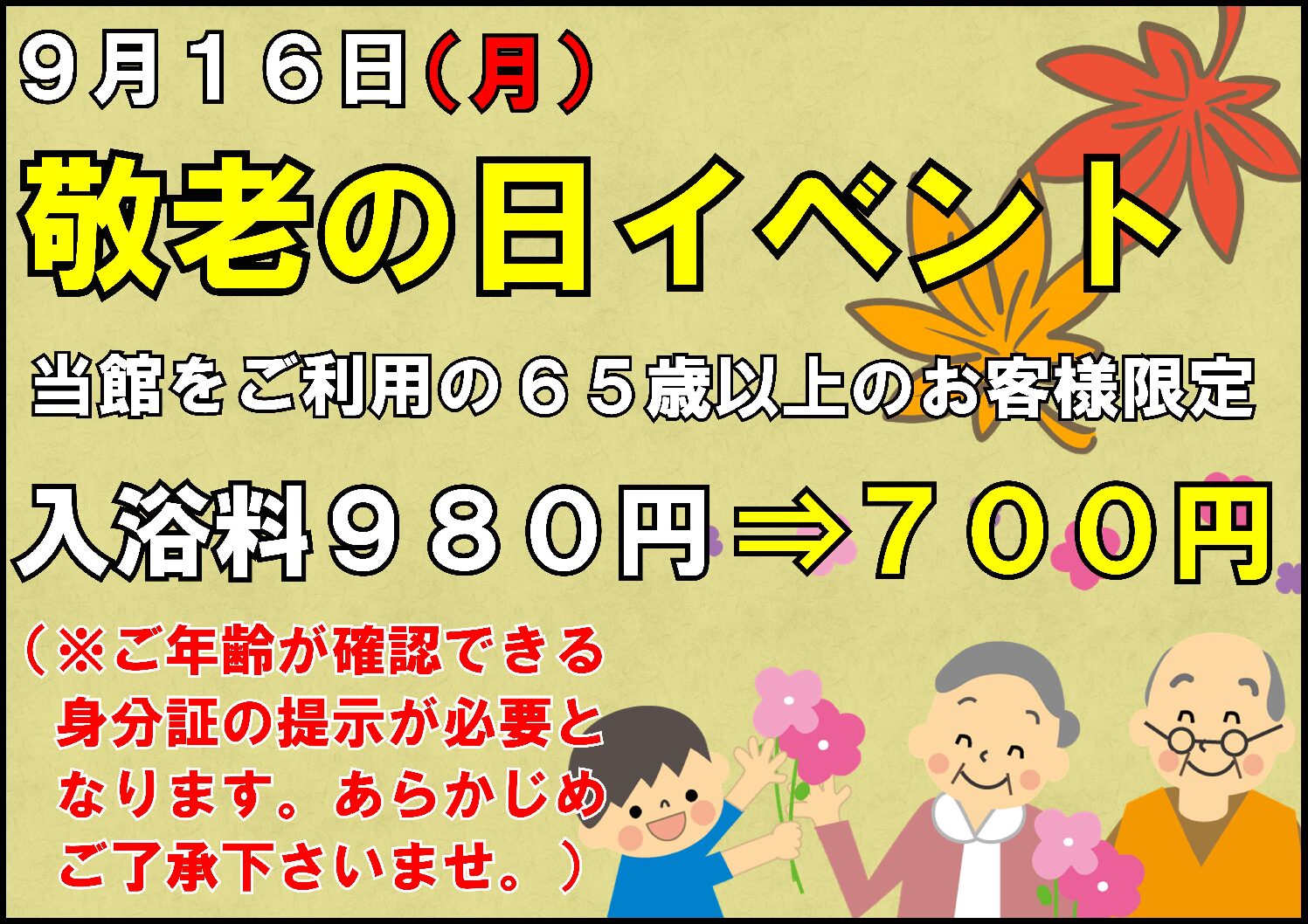 2024.09.14 イベント 【9月16日】敬老の日イベント ご来店された満65歳以上のお客様限定で入場料を特別割引! 通常980円のところを700円にてご利用頂けます♪ (※ご年齢が確認できる身分証などのご提示をお願い致します。) 出張や旅行などで新大阪にお立ち寄りの際はぜひ当店の天然温泉へ! ひなたの湯は早朝より営業中! 朝風呂のご利用でもどうぞ♪ サウナ、ととのい、露天風呂の外気浴でもぜひ当店へ! 皆様のお越しをお待ちしております! シェアする ツイートする LINEで送る 前へ 一覧に戻る 次へ