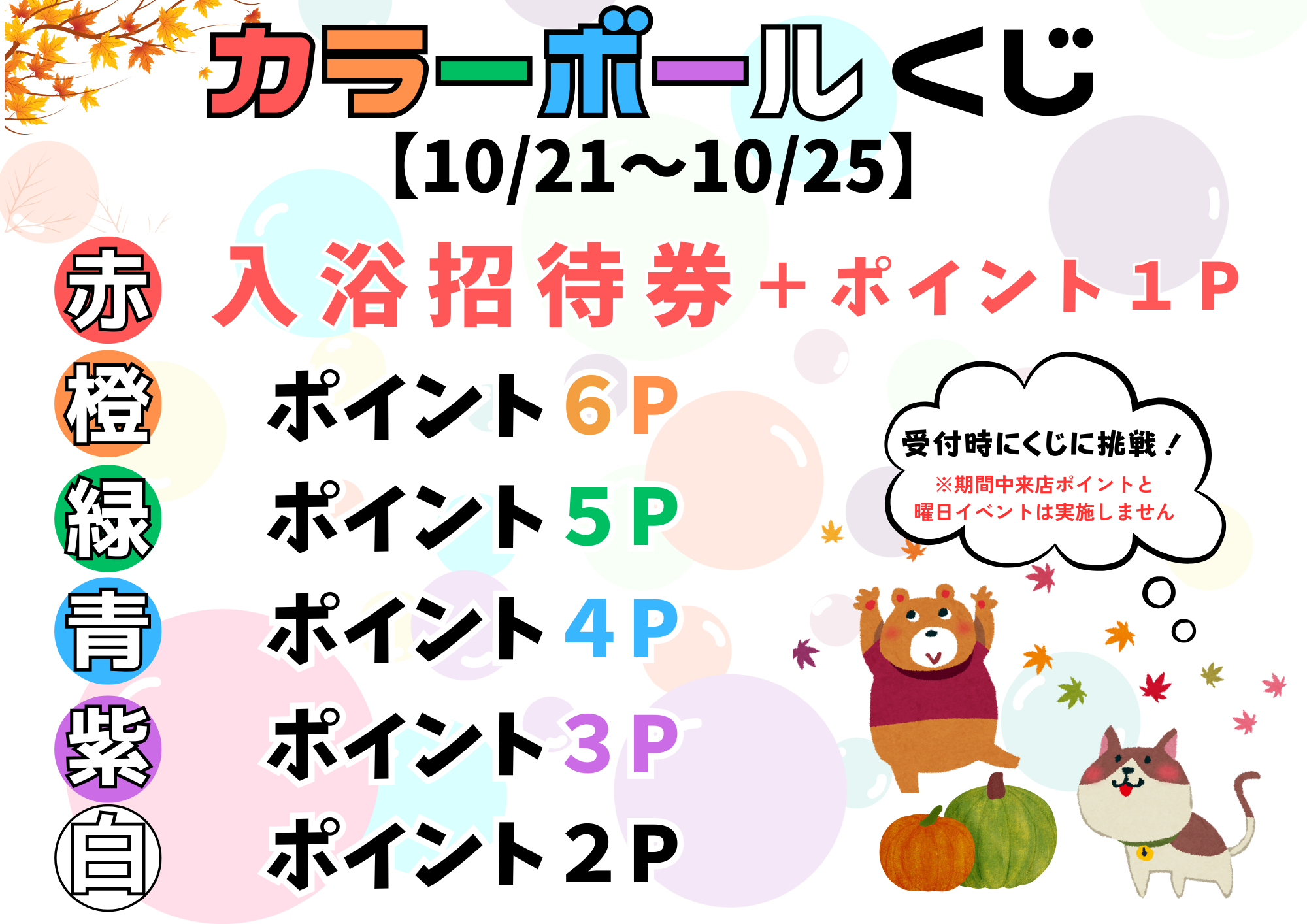 さらに赤色ボールを引かれた方には入浴招待券+1ポイント獲得になります!!