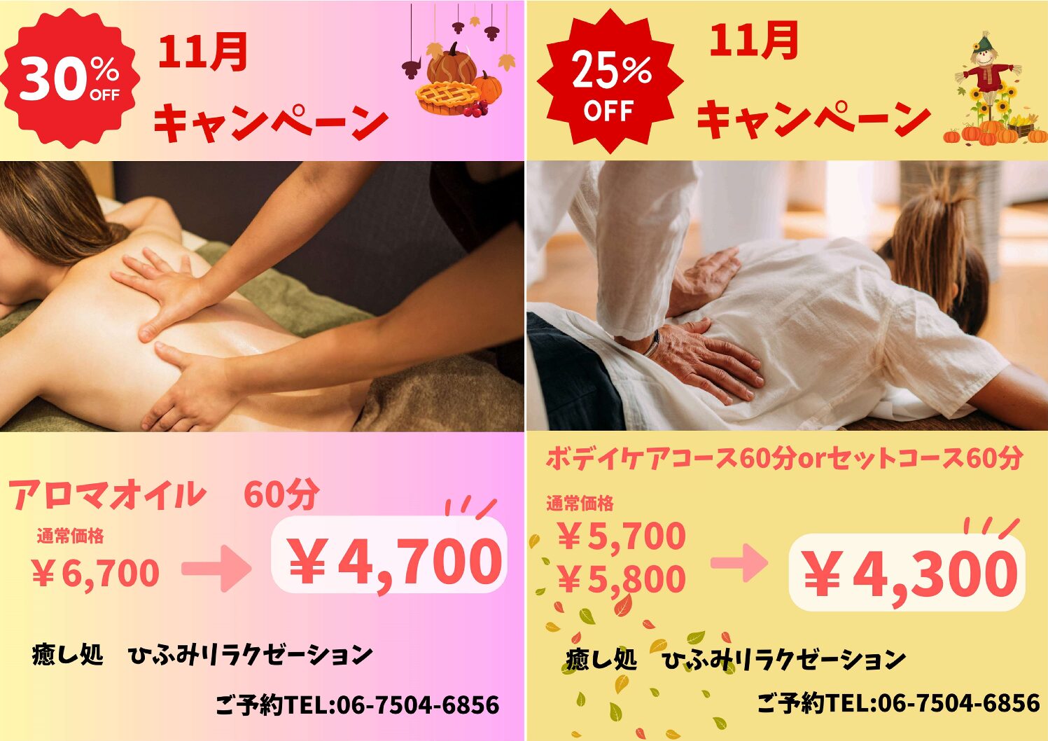 「癒し処 ひふみ」では11月もお得なキャンペーンを実施します!!