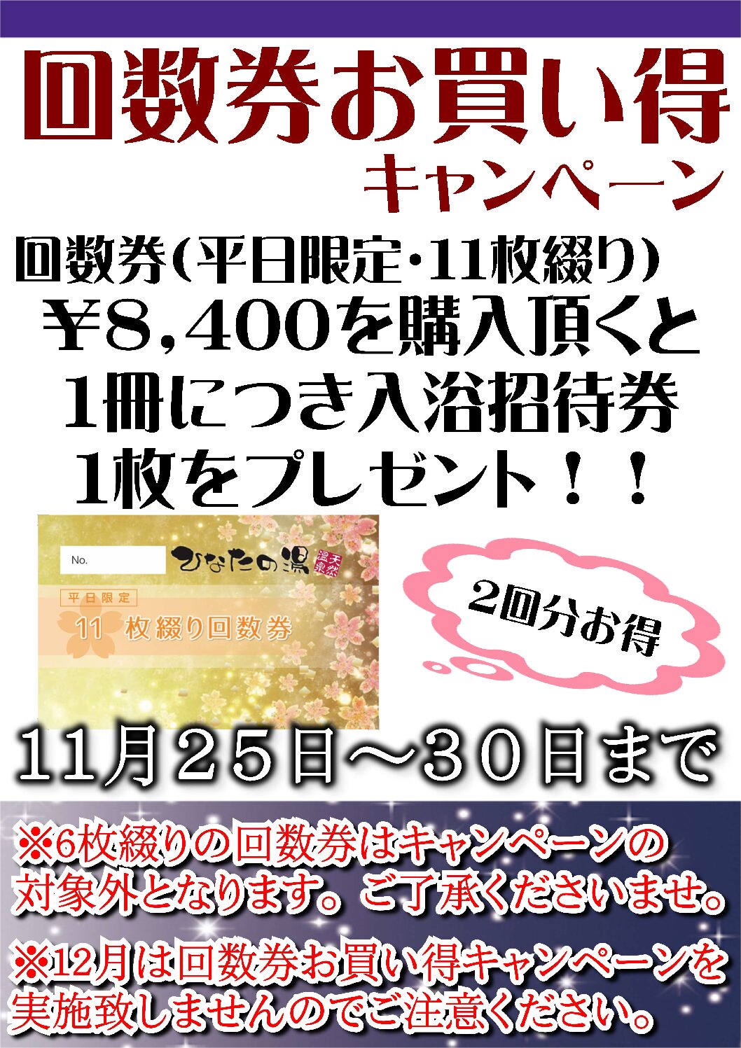 【11月25日~30日】入浴回数券お買い得キャンペーン!