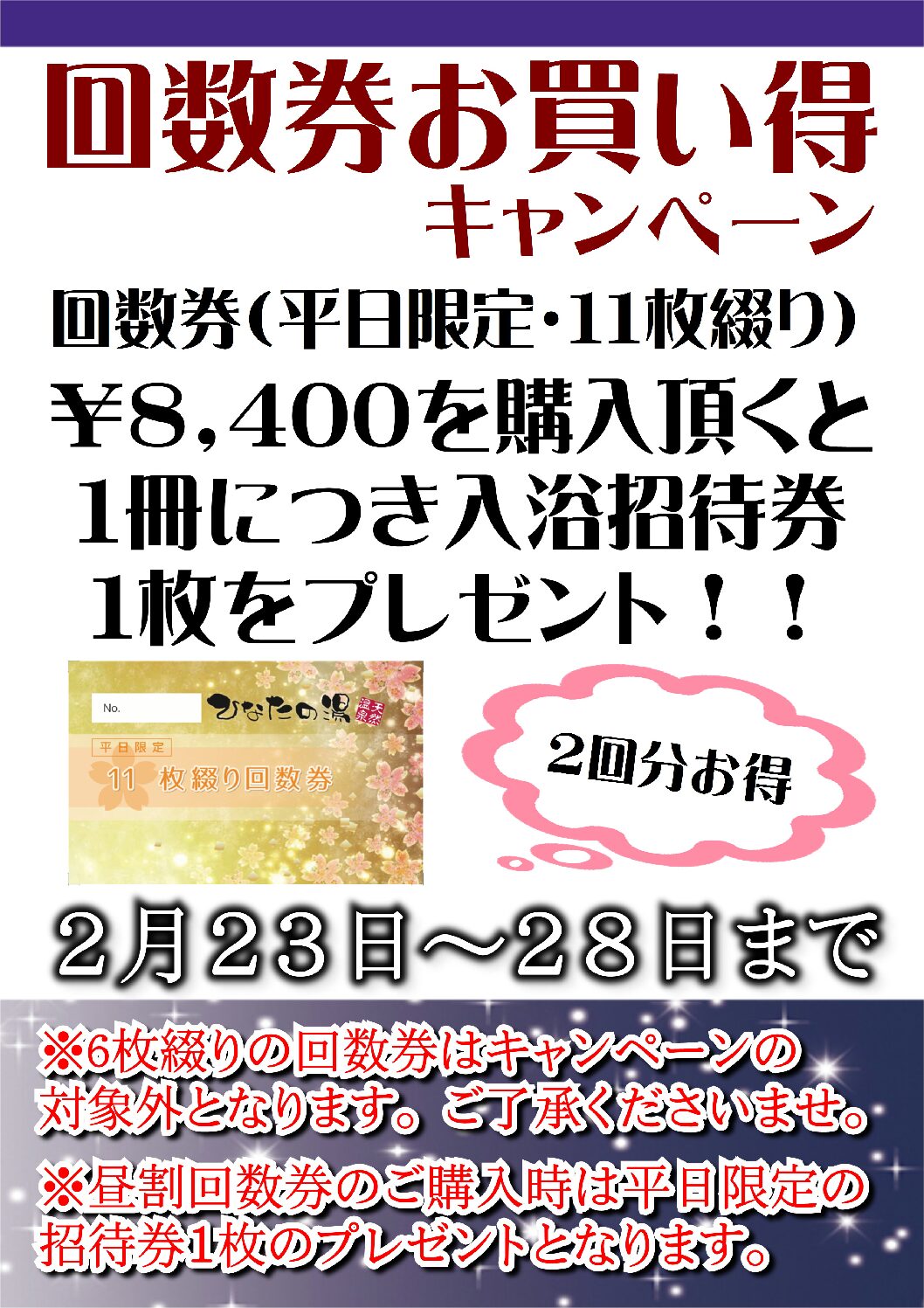 【2月23日~28日】入浴回数券お買い得キャンペーン!