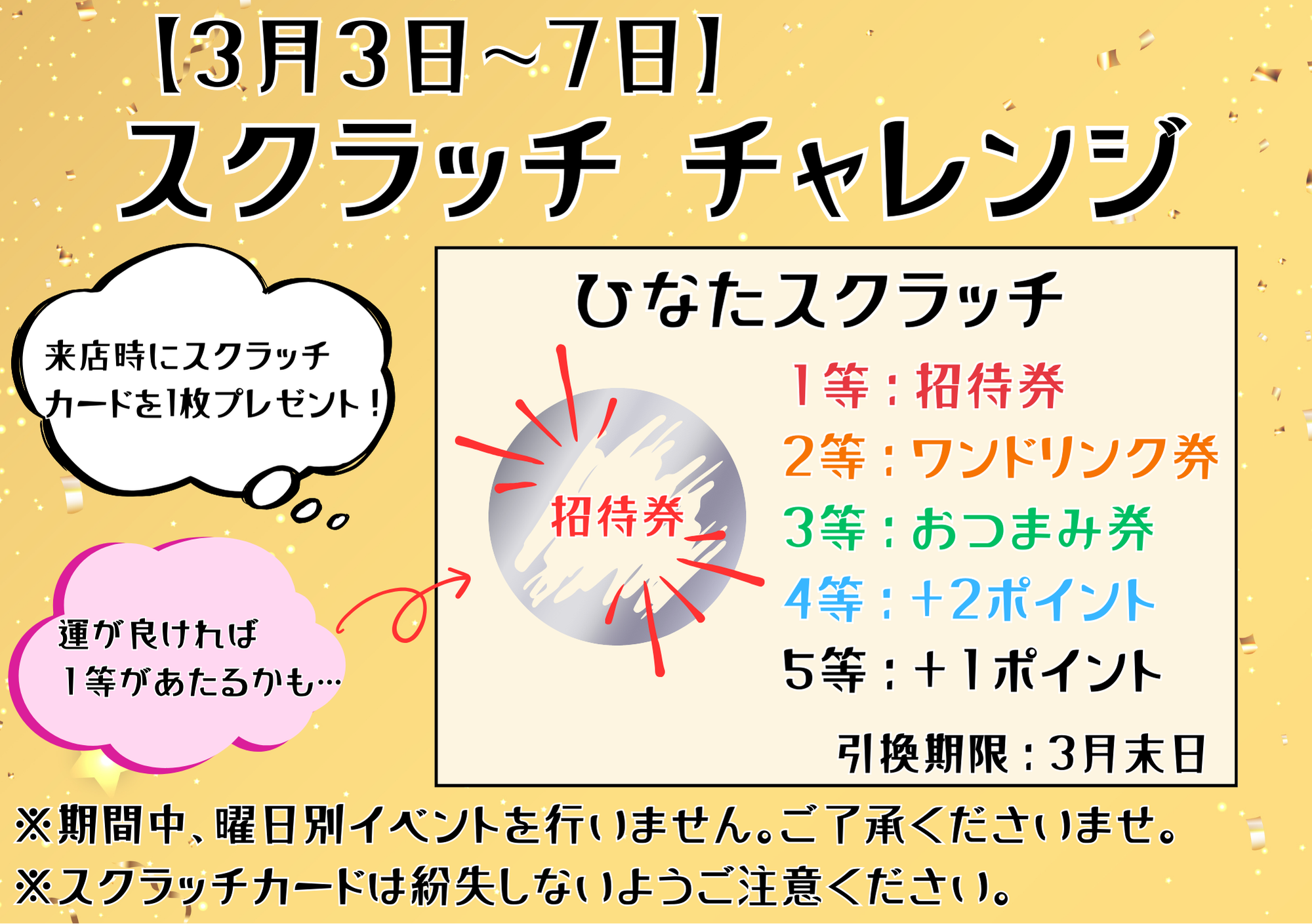 3月3日から7日の5日間はスクラッチチャレンジを開催!