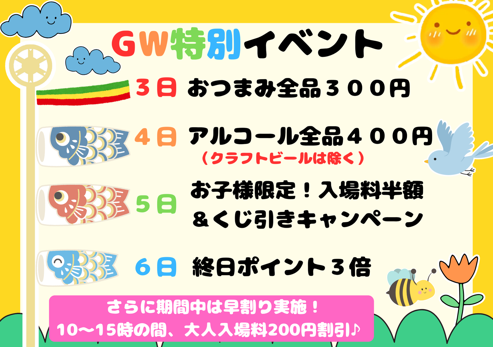 5月3日~5月6日は日替わりでお得なイベントを実施!