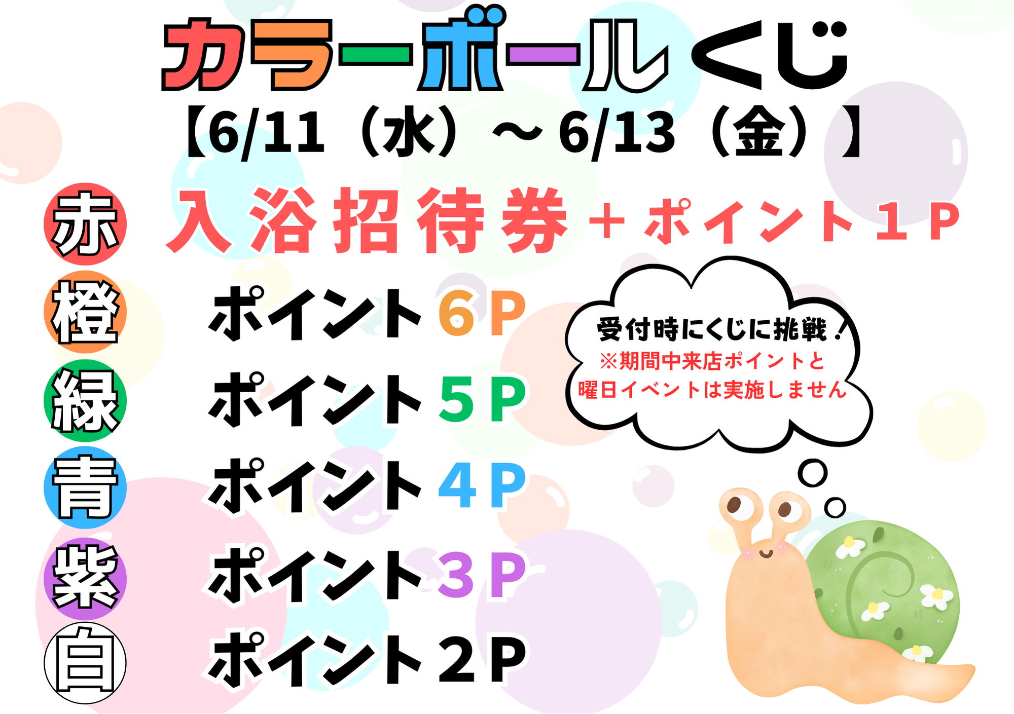 さらに赤色ボールを引かれた方には入浴招待券+1ポイント獲得になります!!