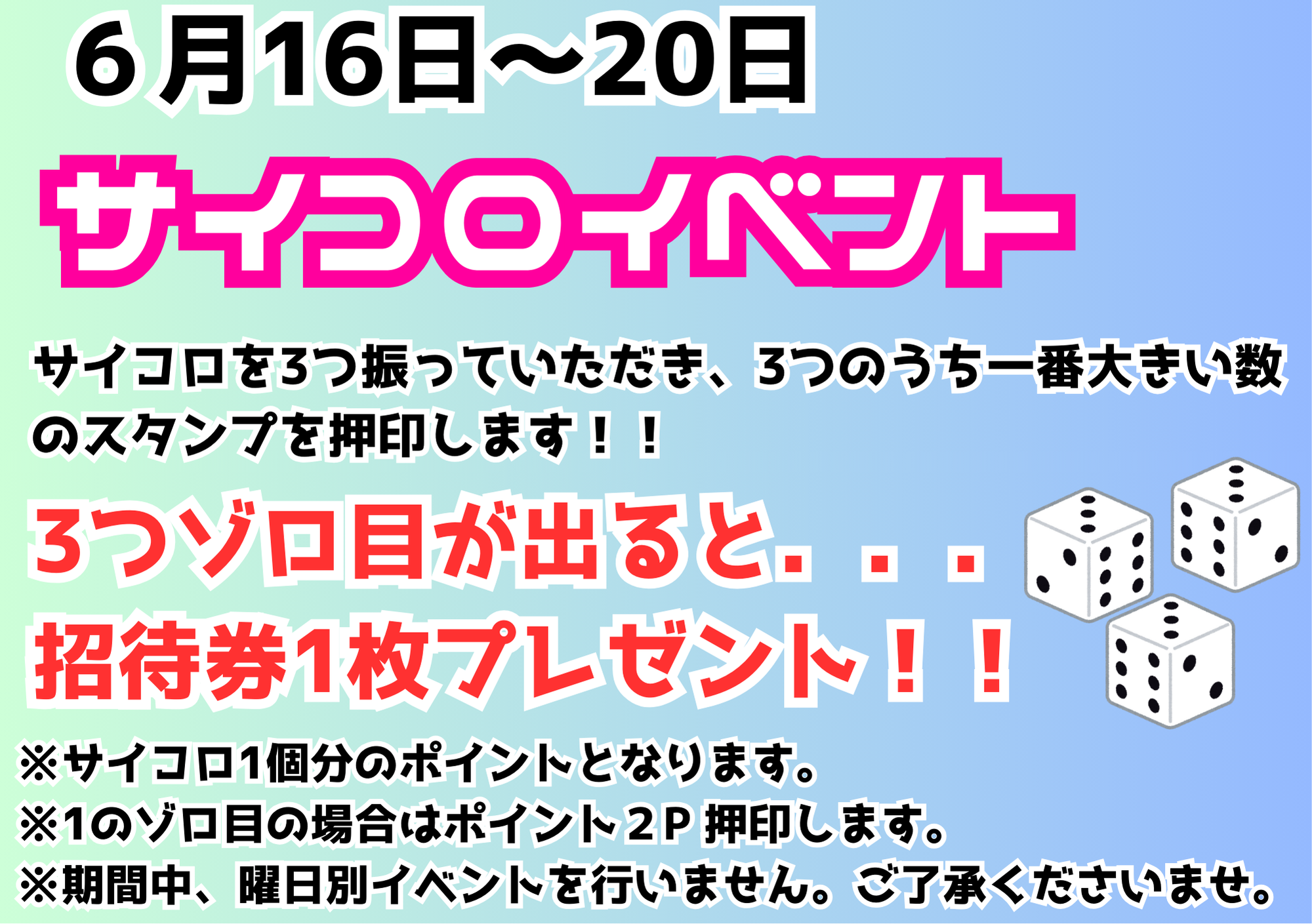 一気にポイントを貯めれるお得な5日間ですので、ぜひ挑戦しにきてくださいね!