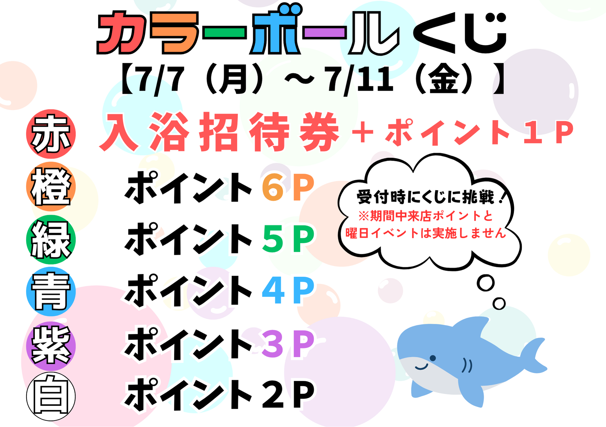 さらに赤色ボールを引かれた方には入浴招待券+1ポイント獲得になります!!