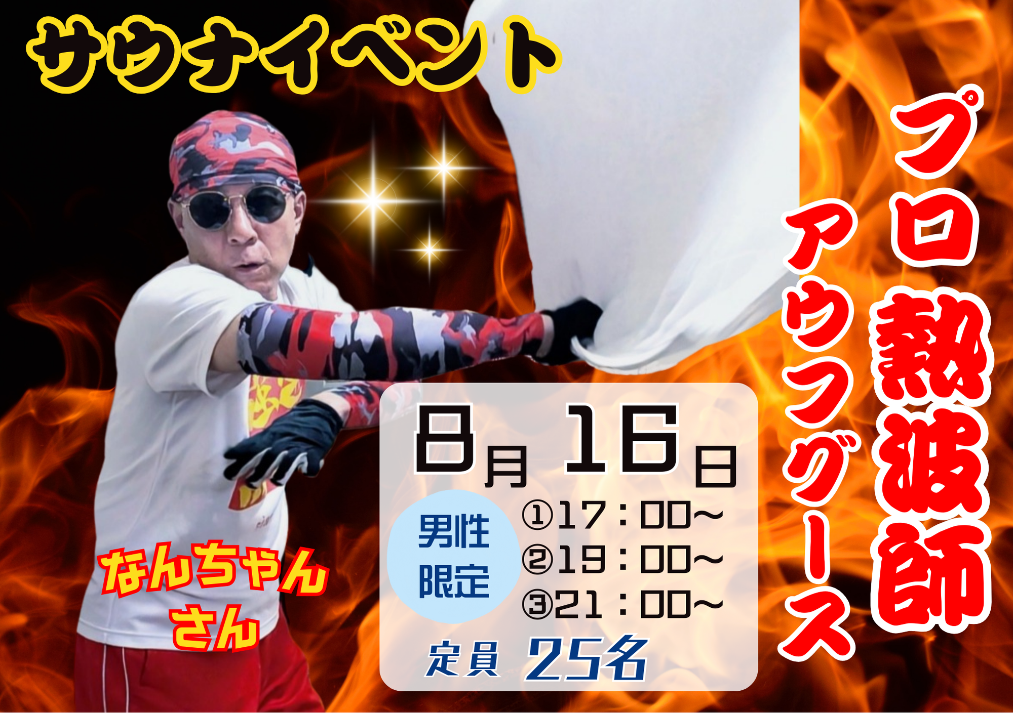 8月16日の夕方から人気プロ熱波師のなんちゃんさんをお招きしてのアウフグースイベントが開催決定いたしました!