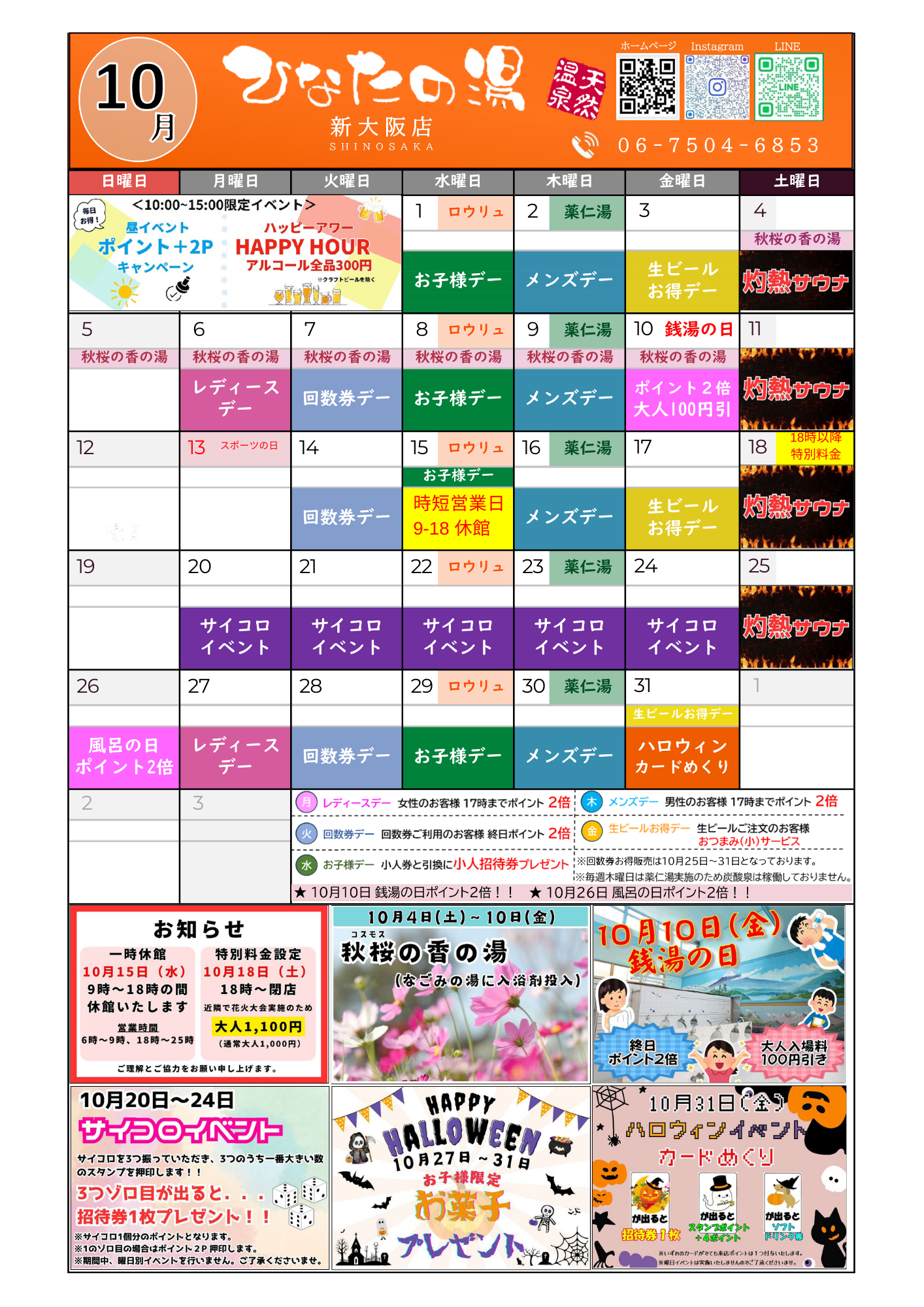 火曜日:回数券デー・・回数券を利用されたお客様は、終日スタンプポイント2倍