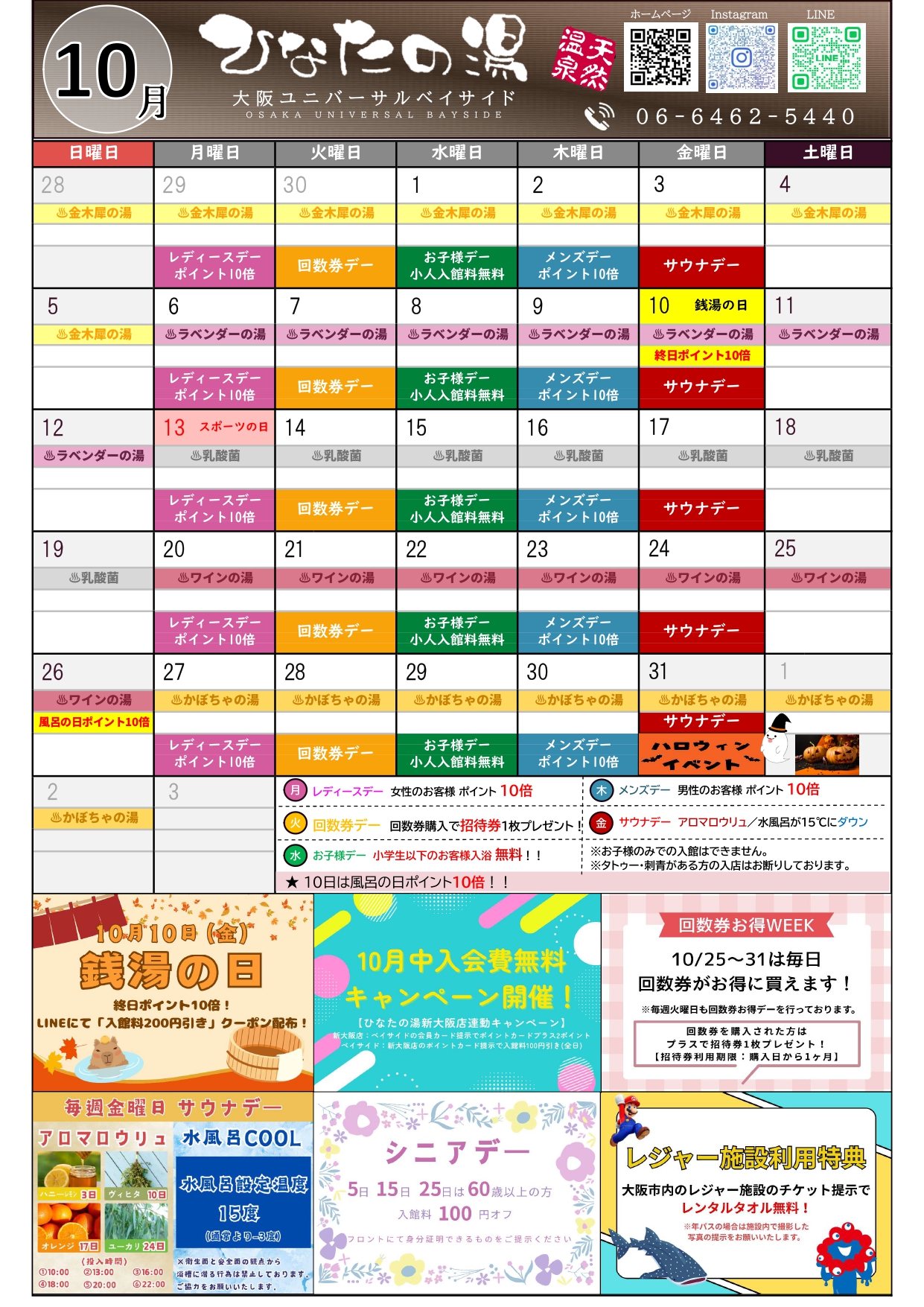 水曜日:お子様デー・・小学生以下のお客様限定で終日入浴無料