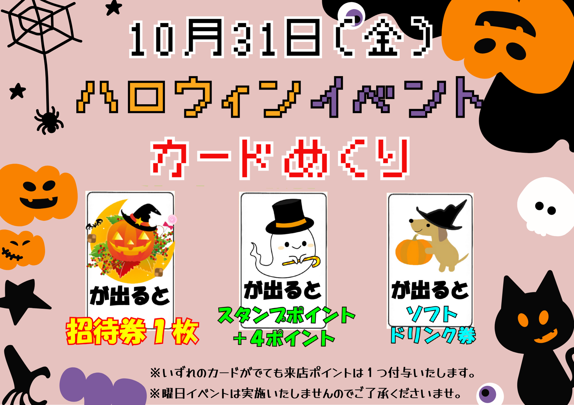 2025.10.24 イベント 【10月31日】ハロウィンカードめくり 10月31日(金)に「ハロウィンカードめくり」イベント開催!! ご来店時にカードめくりに挑戦して頂きます! 出た絵柄に応じたプレゼントがございますので、ぜひ挑戦しに来てくださいね! 出張や旅行などで新大阪にお立ち寄りの際はぜひ当店の天然温泉へ! ひなたの湯は早朝より営業中! 朝風呂のご利用でもどうぞ♪ サウナ、ととのい、露天風呂の外気浴でもぜひ当店へ! 皆様のお越しをお待ちしております! シェアする ツイートする LINEで送る 前へ 一覧に戻る 次へ